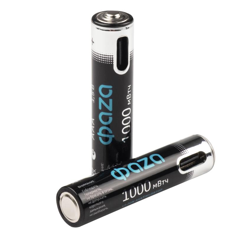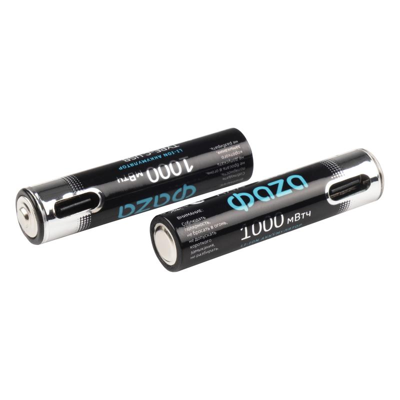 Аккумулятор литиевый AAA 1.5В Li-Ion 1000мВт.ч 660мА.ч зарядка от Type-C шнур в комплекте BL-2 (уп.2шт) ФАZА 5061637