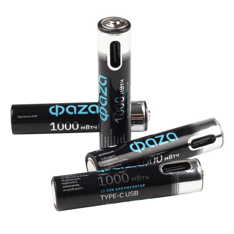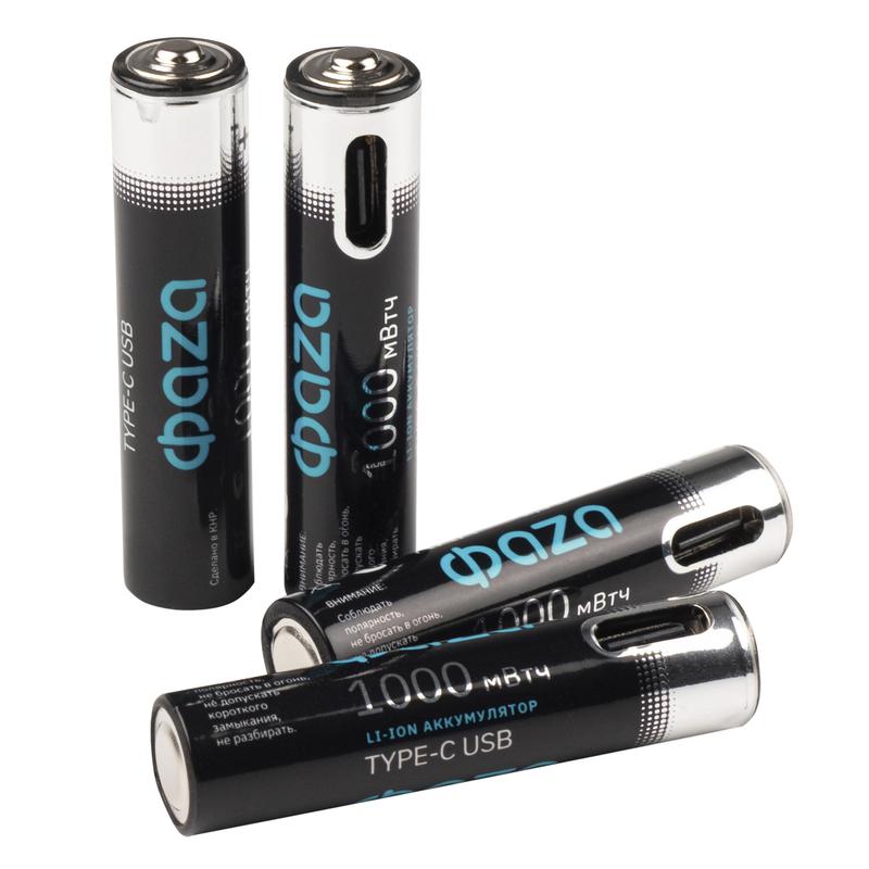 Аккумулятор литиевый AAA 1.5В Li-Ion 1000мВт.ч 660мА.ч зарядка от Type-C шнур в комплекте BL-4 (уп.4шт) ФАZА 5061668