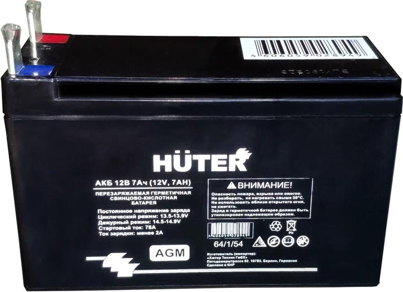 Батарея аккумуляторная АКБ 12В 7А.ч для бензин. генераторов с электрич. запуском HUTER 64/1/54