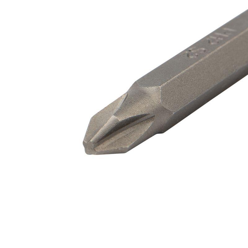 Изготовлена из легированной высокопрочной стали S2, что дает повышенную устойчивость к изломам и деформации в наиболее нагружаемых точках касания. Размер наконечника PH2 подходит для работы со шлицами с резьбовым диаметром 3,1-5 мм. Намагниченный наконечник облегчает крепление и фиксацию крепежа на бите. Шестигранный хвостовик надежно фиксирует биту в патроне инструмента и не дает ей проворачиваться.