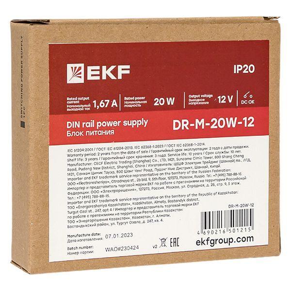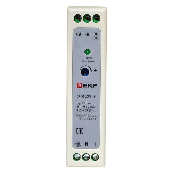 Блок питания на DIN-рейку 20Вт Uвх ~ 220В AC m Uвых - 12В DC постоянного тока EKF DR-M-20W-12