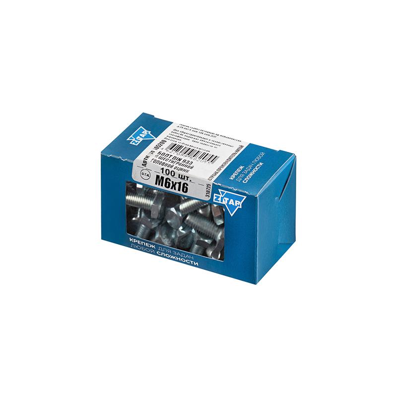 Болт с шестигранной головкой М6х16 DIN 933 класс прочн. 8.8 оцинк. (коробка) (уп.100шт) Tech-Krep/Zitar 105200