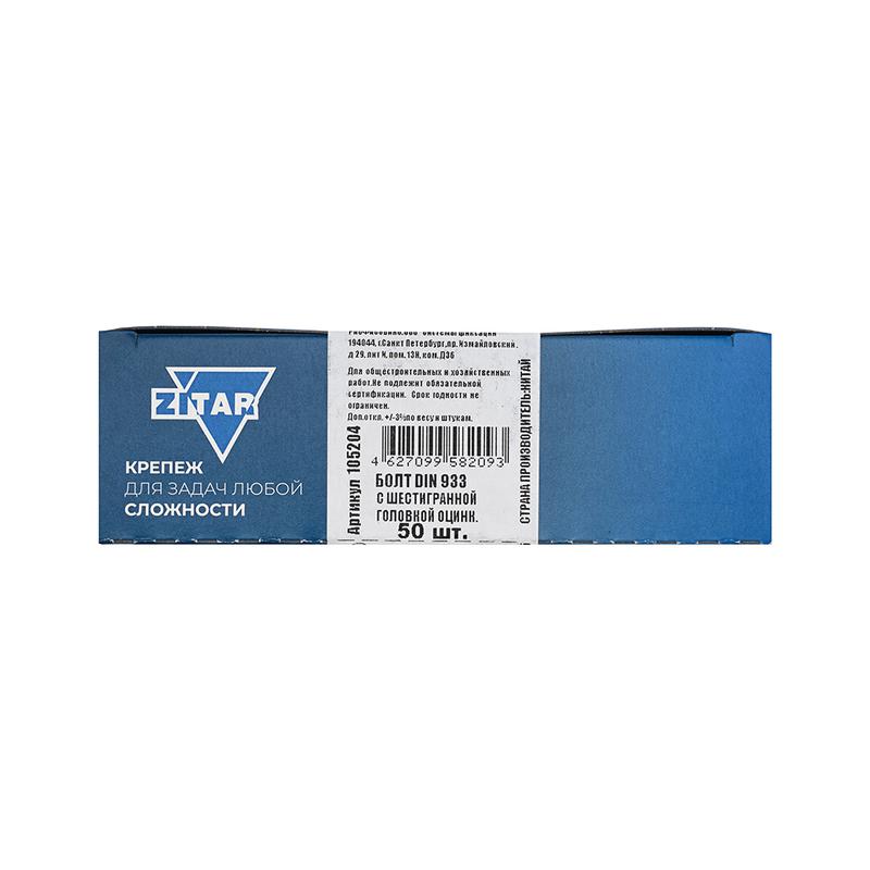 Болт с шестигранной головкой М6х40 DIN 933 оцинк. (уп.50шт) Tech-Krep/Zitar 105204