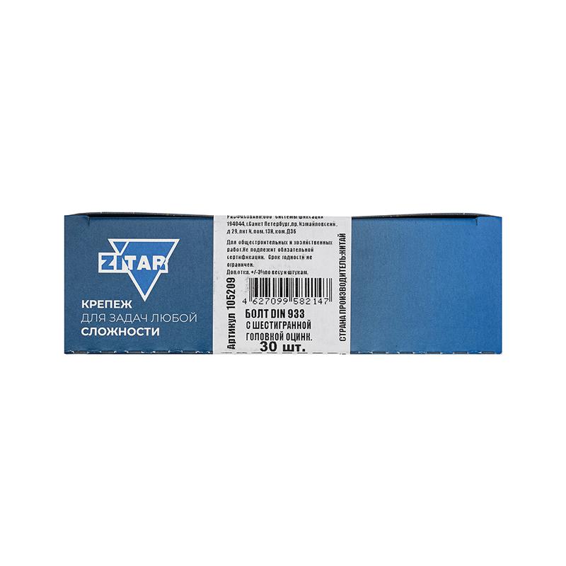 Болт с шестигранной головкой М8х30 DIN 933 оцинк. (коробка с окном) (уп.30шт) Zitar 105209