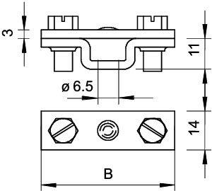 Для плоских проводников FL 30 и FL 40; с монтажным отверстием d 6,5 и 2 шестигранными болтами M6 x 16 (F).