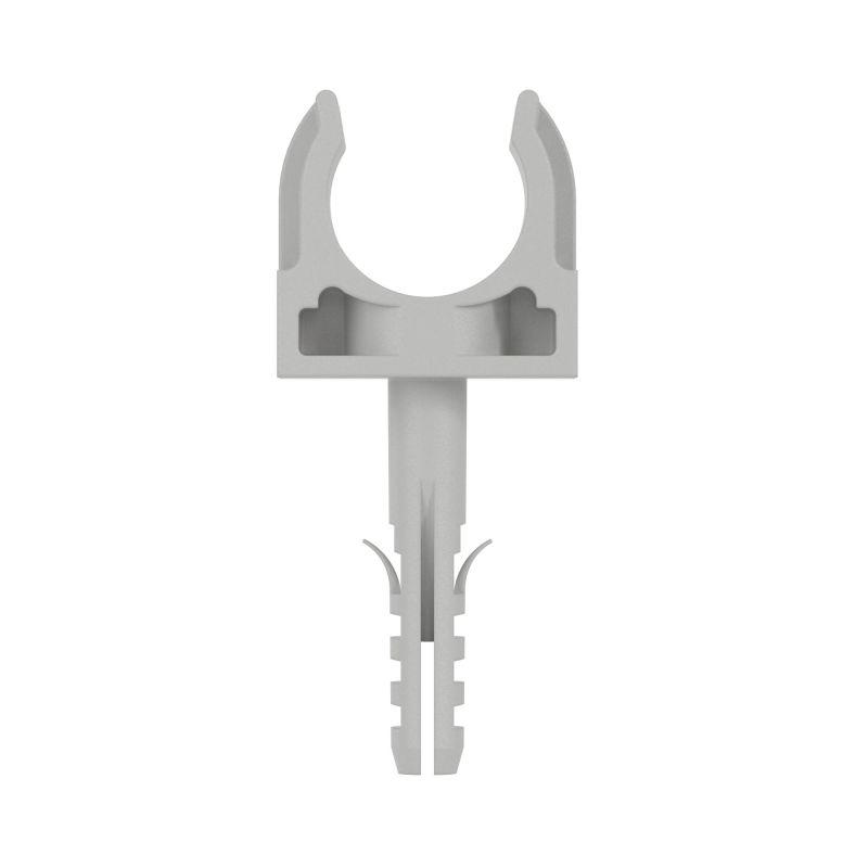 Держатель с защелкой и дюбелем предназначен для крепления жестких гладких и гофрированных труб к поверхности стен, потолков, полов и перегородок. Диаметр - 16 мм. Материал: полипропилен. Цвет серый RAL 7035. Элемент системы может эксплуатироваться при широком диапазоне температур: от –25°С до +60 °С.