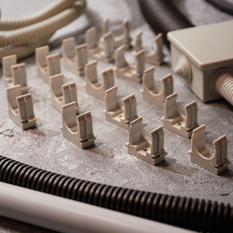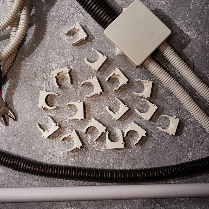 Крепеж-клипса для монтажного пистолета предназначен для крепления пластиковых труб к стене, потолку или полу. Выдерживает повышенные механические нагрузки, возникающие при монтаже с использованием пневмопистолета. Изготовлен из качественных материалов по современным технологиям пластикового литья. Изделие оснащено фиксаторами типа "шип-паз": при установке возможно соединять крепежи-клипсы различных диаметров. Для установки элемента предусмотрено технологическое отверстие под дюбель или саморез, а также уменьшенное отверстие под гвоздь по бетону. Широкие лапки изделия обеспечивают надежную фиксацию труб без возникновения замятий. Благодаря качественному пластику и прочным ребрам жесткости крепеж-клипса не ломается и не ослабляется под воздействием низких и высоких температур.