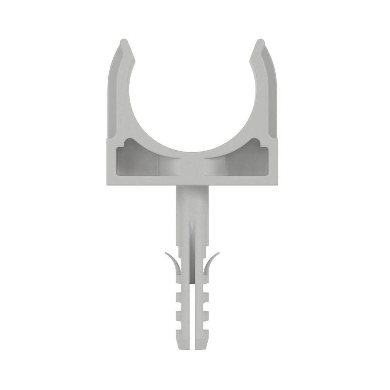 Держатель с защелкой и дюбелем предназначен для крепления жестких гладких и гофрированных труб к поверхности стен, потолков, полов и перегородок. Диаметр - 32 мм. Материал: полипропилен. Цвет серый RAL 7035. Элемент системы может эксплуатироваться при широком диапазоне температур: от –25°С до +60 °С. Розничная упаковка