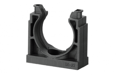 Держатель из полиамида фиксируется на поверхностях стен, потолков и т.п. и используется для крепления полиамидных труб. Внутренний диаметр держателя - 48 мм. Для более надежной фиксации желательно дополнительно использовать хомуты. Материал – полиамид (PA6.6). Цвет - черный. Температура эксплуатации – от –45 до +105 °С (выдерживает кратковременное воздействие до +150 °С). Не содержит галогенов.