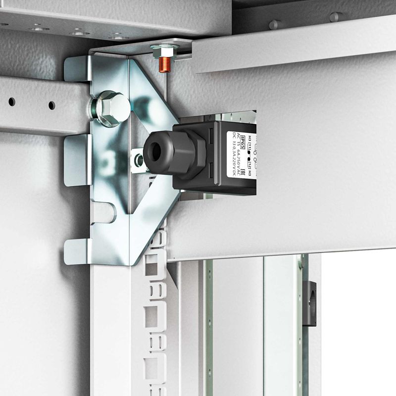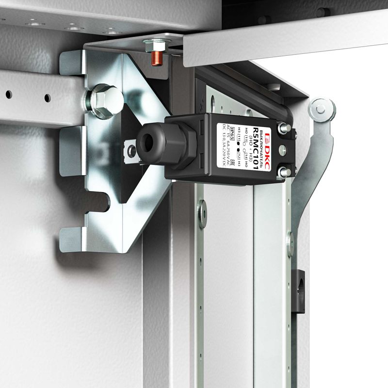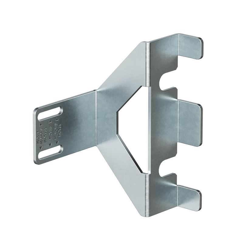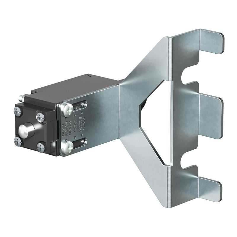 Держатель "RAM fit" предназначен для установки концевых выключателей серии R5MC. Он изготавливается из оцинкованной стали толщиной 2 мм. Держатель крепится к профилю в верхней части корпуса с использованием болта и вытяжной гайки. На держатель нанесена гравировка для позиционирования концевых выключателей в различных исполнениях (с кнопкой, с роликом, со штангой). Для установки держателя с концевым выключателем в систему секционирования требуется перфорированный пластрон R5FP...LS