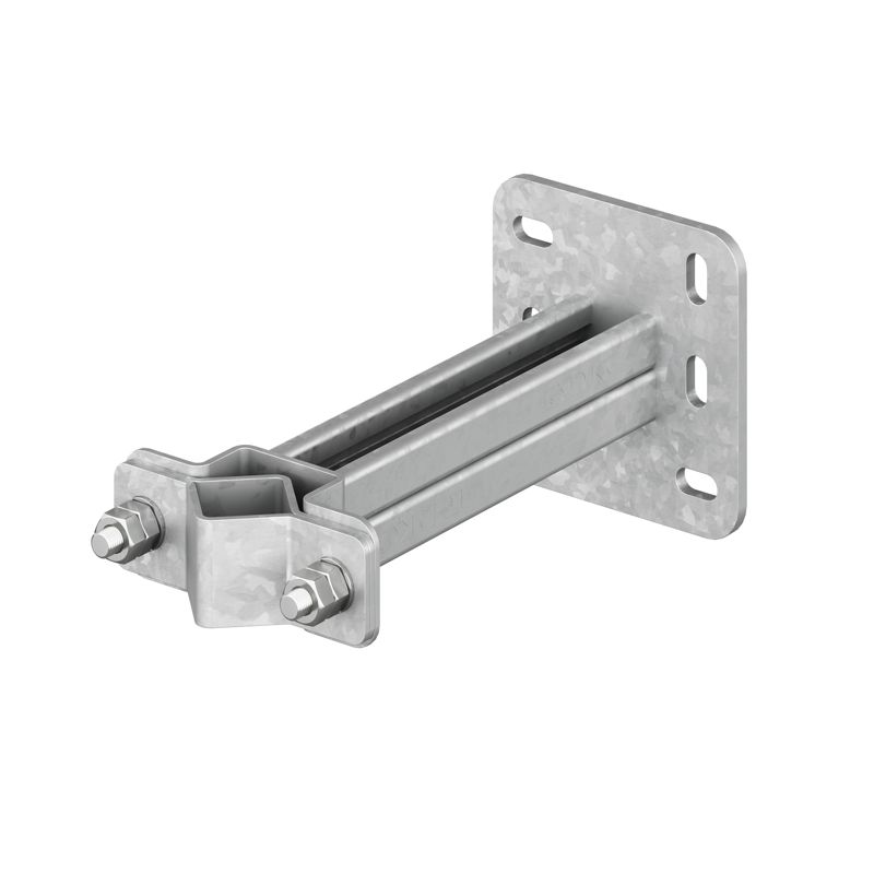 Настенный держатель предназначен для надежной фиксации молниеприемных мачт длиной 5-7 метров на вертикальной поверхности. Для установки мачты необходимо использовать как минимум 2 держателя, минимальное рекомендуемое расстояние между ними - 0,5 м. Материал - горячеоцинкованная сталь.