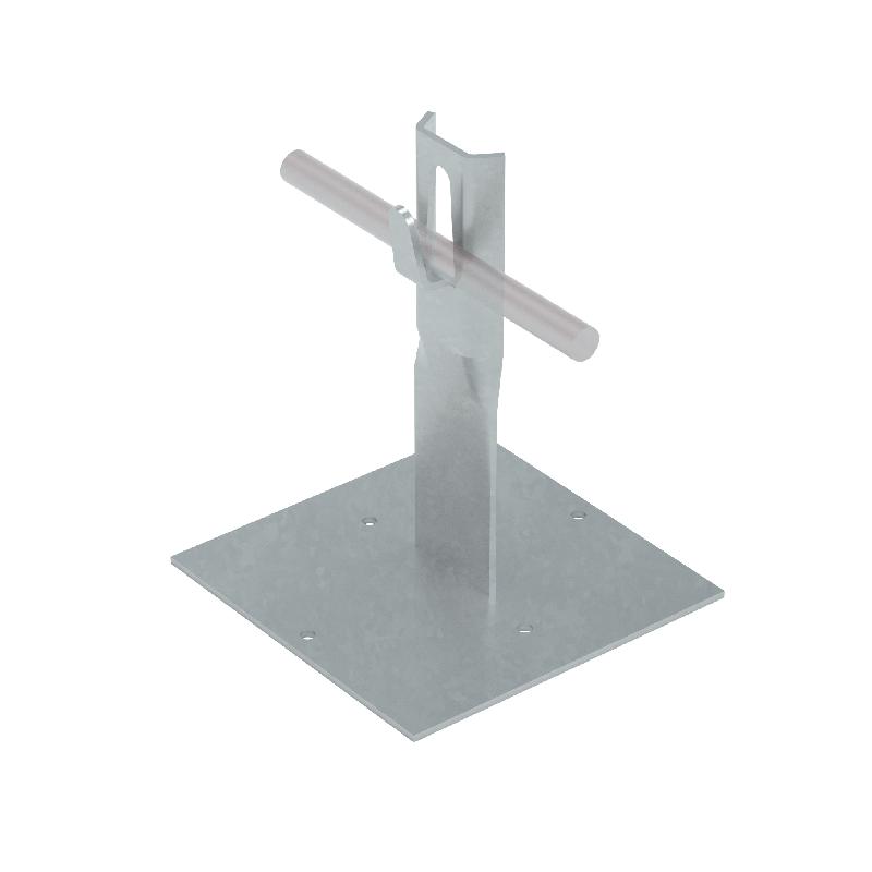 Компонент системы молниезащиты и заземления AURAFORT®, который используется для фиксации и соединения опорных конструкций проводников и элементов заземления на объектах различного типа назначения. Приклеиваемый держатель зажимной применяется для укладки прутка диаметром 5-8 мм на плоских крышах. Устанавливается путем приклеивания на битум или силиконовый клей. Фиксация проводника осуществляется при помощи безвинтового зажима. Изделие выполнено из стали оцинкованной электрохимическим способом. Предназначено для применения в местах предпочтительно с сухим климатом, внутри помещений и в слабоагрессивных средах, в соответствии с ГОСТ 15150-69.