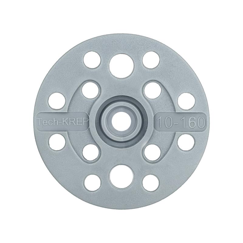 Тарельчатый дюбель IZO состоит из следующих элементов: дюбель с двухсегментной распорной зоной и увеличенной прижимной шайбой диаметром 60 мм, и распорный элемент – гвоздь. Материал, из которого изготовлены дюбель и гвоздь – полипропилен. Дюбель предназначен для крепления теплоизоляционных строительных материалов и изделий (толщиной до 150 мм) к основаниям из бетона, кладки из полнотелого, силикатного и пустотелого керамического кирпича, ячеистого бетона. Установка производится методом сквозного монтажа. В среднем на 1 кв. м площади теплоизоляции применяется 5-8 дюбелей.