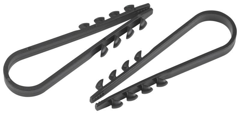 Дюбель-хомуты ЭРА предназначены для крепления круглых и плоских проводников, жестких и гибких труб на несущих строительных поверхностях, испытывающих статическую нагрузку. Могут быть установлены в любой материал: бетон, кирпич, дерево, ДСП, фанеру, газобетон и т.д., а также в стены, выполненные из пеноблоков и природного камня. Материал изделий - полиэтилен выского давления, благодаря чему они отличаются прочностью и рассчитаны на высокие нагрузки. Установка дюбель-хомута довольно проста. Достаточно лишь просверлить отверстие, соответствующее диаметру дюбеля, затем надеть дюбель на провод и вставить в отверстие, приложив небольшое усилие. Зубчики, находящиеся на дюбеле, упираются в стенки отверстия и обеспечивают надежную фиксацию, не позволяя крепежу выскользнуть из него даже при значительных усилиях. В ассортименте 2 типа изделий: для круглого и для плоского кабеля. Особенности изделий: - Быстрый монтаж без дюбелей и шурупов. - Надежная фиксация проводника в стене благодаря увеличенным зубьям. - Материал: полиэтилен выского давления, не поддерживает горение.