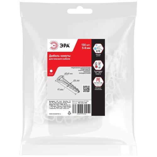 Дюбель-хомут 5-8мм для плоского кабеля NO-224-228 бел. (уп.100шт) Эра Б0066282