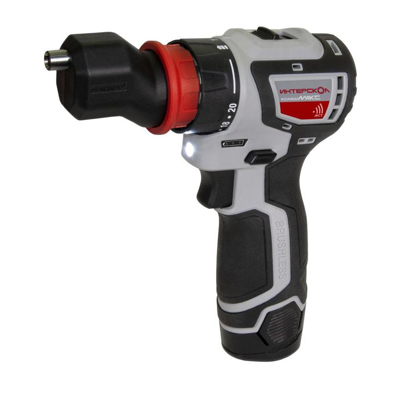 Дрель-шуруповерт акуумуляторная бесщеточн. ДА-10/12В 36 КомбиМАКС (Li-ion сумка 2 аккум. 2А.ч 4 насадки) ИНТЕРСКОЛ 687.2.2.78