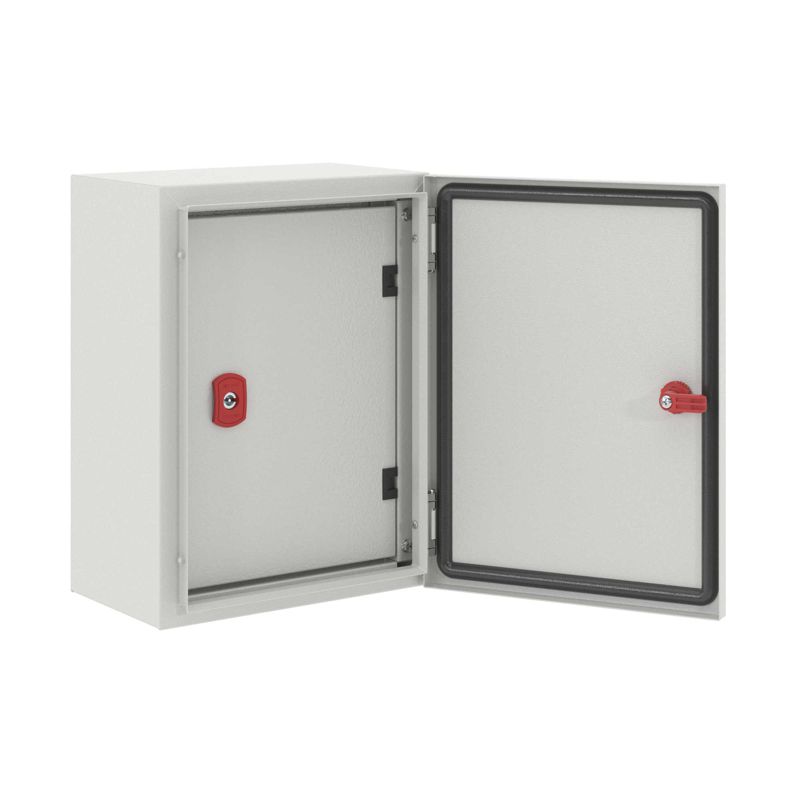 Дверь внутренняя для корпусов ST/STX/STE/STEX/STH изготавливается из стали толщиной 1,5 мм с атмосферостойким порошковым покрытием, цвет RAL7035. Личинка замка, ригели, петли из металла. Допустимая статическая нагрузка на дверь 12 кг, максимальный угол открытия 95°, степень пыле- и влагозащиты IP20 при сохранении IP66 для корпуса. Расстояние от монтажной платы до внутренней двери при глубине корпуса: 300 мм - от 227 до 259 мм; 400 мм - от 327 до 359 мм. Комплект поставки: внутренняя дверь с рамой, петли, замок с личинкой под ключ с двойной бородкой, комплект заземления без проводов. Габариты 1000x800 (ВхШ) мм.