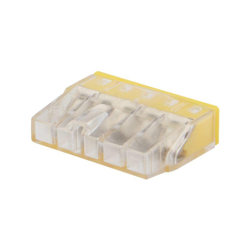 Компактный прозрачный корпус удобен для контроля соединения, а яркая цветовая разметка способствует визуальному различию клемм по количеству проводников.