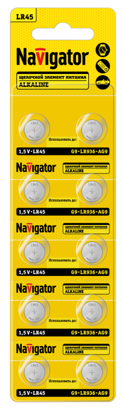 Элемент питания алкалиновый "таблетка" 95 670 NBT-13 (LR45 AG9 LR936 BP10) (блист.10шт) Navigator 95670