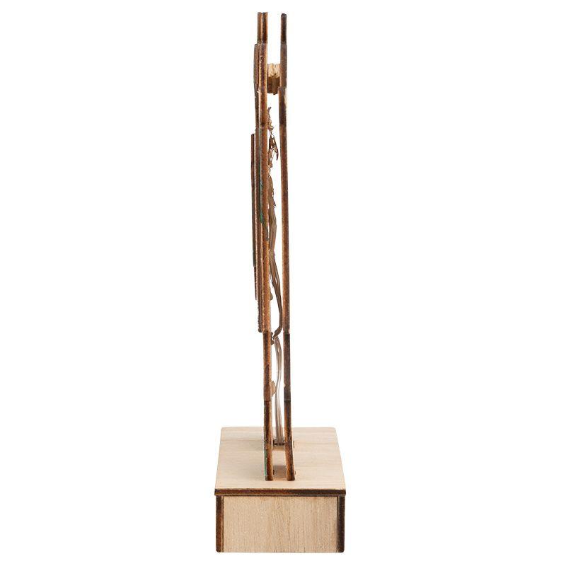 Деревянная фигурка с подсветкой «Дед Мороз» высотой 18 см работает от двух батареек типа ААА, поэтому ее можно разместить в любом уголке вашего дома, не уделяя внимание поиску розеток. Изделие, произведенное из экологичных материалов, станет прекрасным подарком к новогодним праздникам, который вызовет только приятные эмоции. 5 экономичных диодов теплого белого свечения мягко обрамляют композицию, создавая атмосферу тепла и уюта. Фигурка предназначена для использования в помещениях с умеренной влажностью.