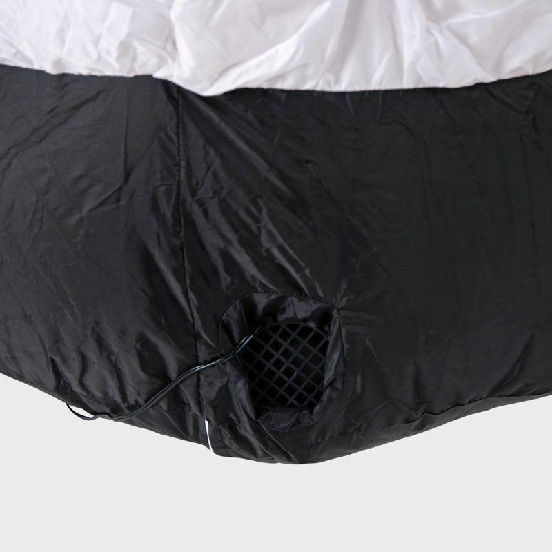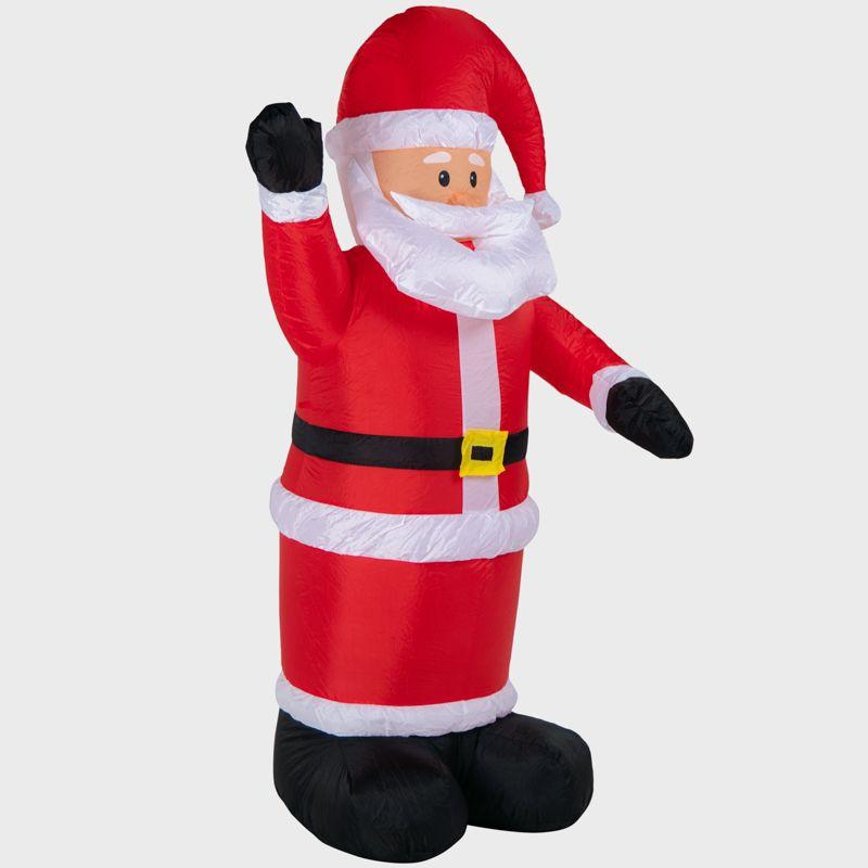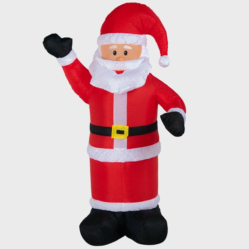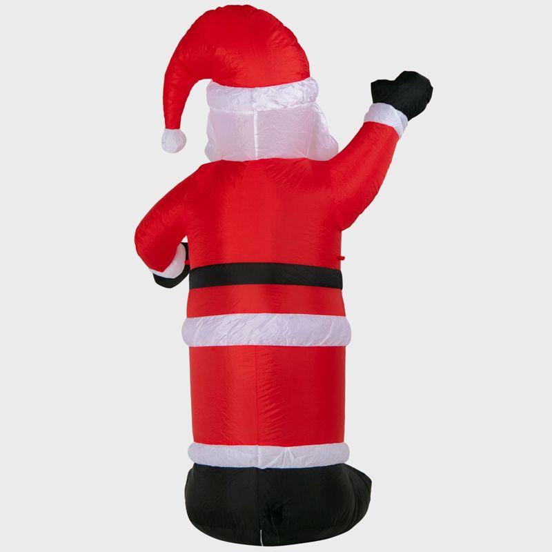 Надувная 3D-фигура «Дед Мороз приветствует» высотой 180 см — оригинальное новогоднее украшение с подсветкой, которое можно разместить как в помещении, так и на улице. Пылевлагозащита по стандарту IP65 исключает повреждения из-за попадания воды. Фигура не боится критически низких или высоких температур в диапазоне –40...+50 °С. 5 ярких диодов питаются от сети 230 Вольт через понижающий трансформатор, который идет в комплекте. Чтобы фигуру не унесло порывом ветра, предусмотрен надежный крепеж. Купол выполнен из плотного капрона.