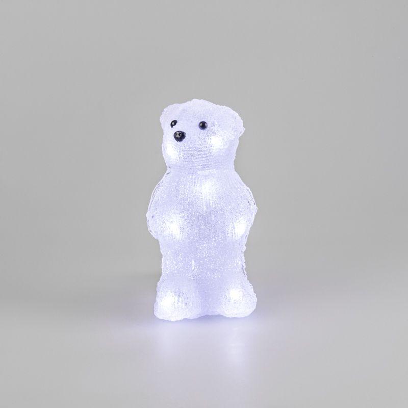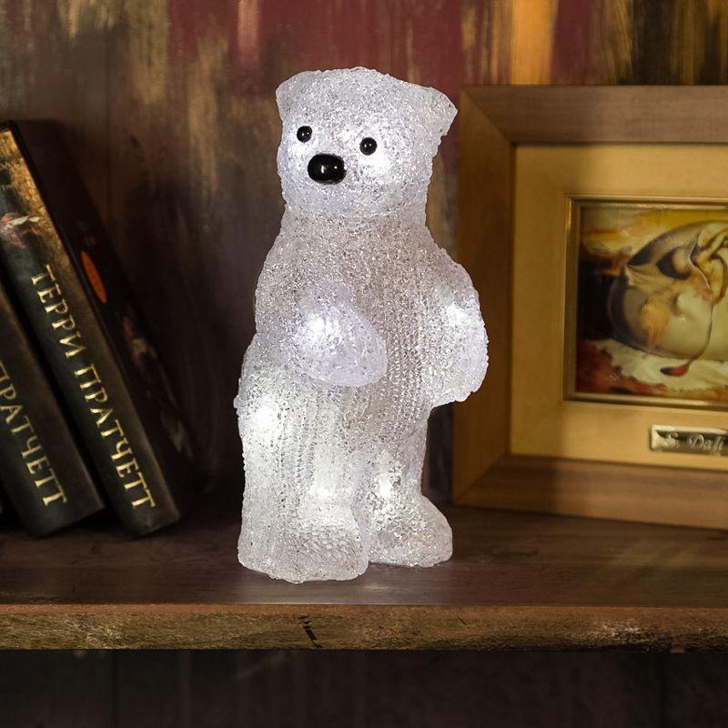 Акриловая светодиодная фигура «Медвежонок» высотой 22 см — интересное решение для оформления интерьера, которое станет ярким акцентом, выгодно подчеркнет особенности дизайна и подарит ощущение уюта. 10 ярких светодиодов излучают белый свет нейтрального оттенка, мягко обрамляя контуры и создавая эффект объема. Корпус выполнен из прочного акрила, особая технология обработки поверхности обеспечивает приятную фактуру, визуально имитирующую плюшевую шерсть животного. Фигура работает от 3 батареек типа АА и полностью безопасна в использовании.
