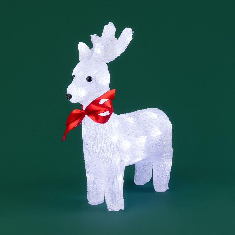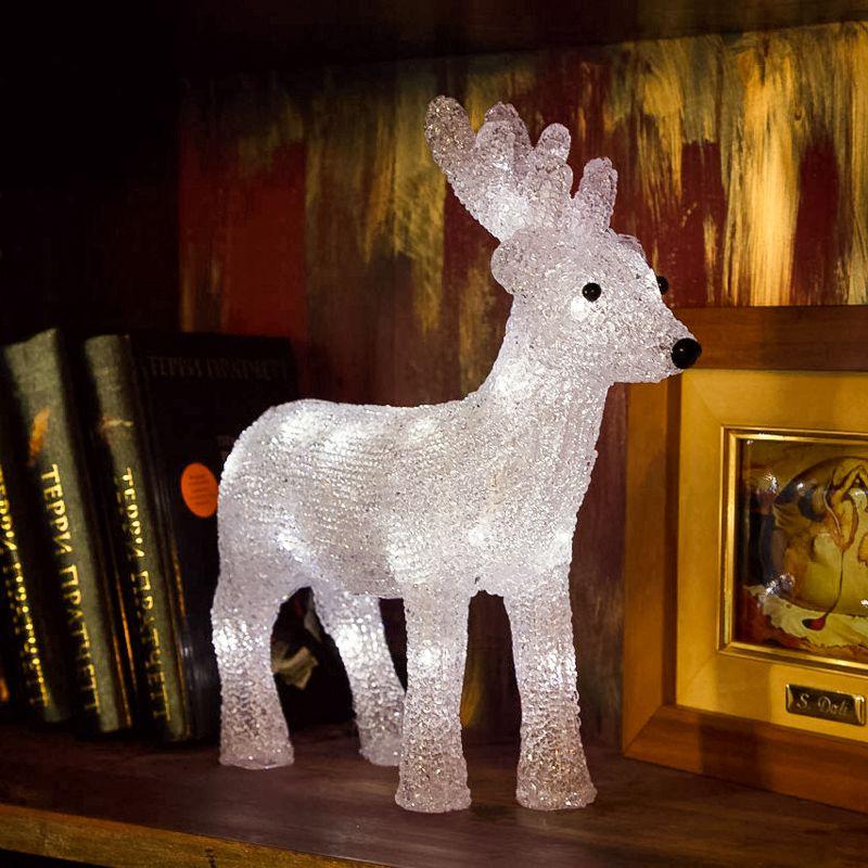 Акриловая светодиодная фигура «Олененок» 30?14?35 см выполнена с применением новой технологии нанесения материала: изделие имеет приятную фактурную поверхность, которая эффектно рассеивает пучки яркого света, излучаемого диодами. Красивая фигурка оленя стоит на собственных ножках и не нуждается в подключении к розетке, что делает декор мобильным. 40 светодиодов питаются от трех батареек типа АА — это безопасное решение, которое подходит для оформления любых комнат, включая детские. Оригинальное интерьерное украшение станет прекрасным подарком к празднику.
