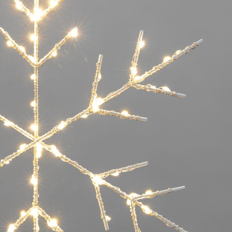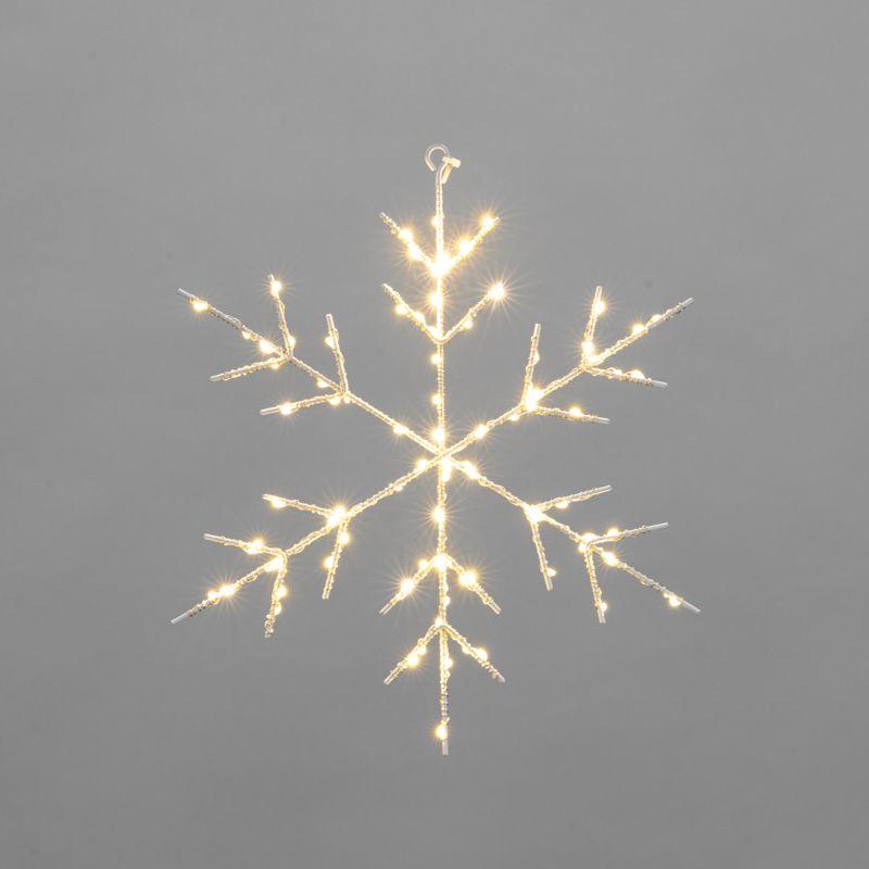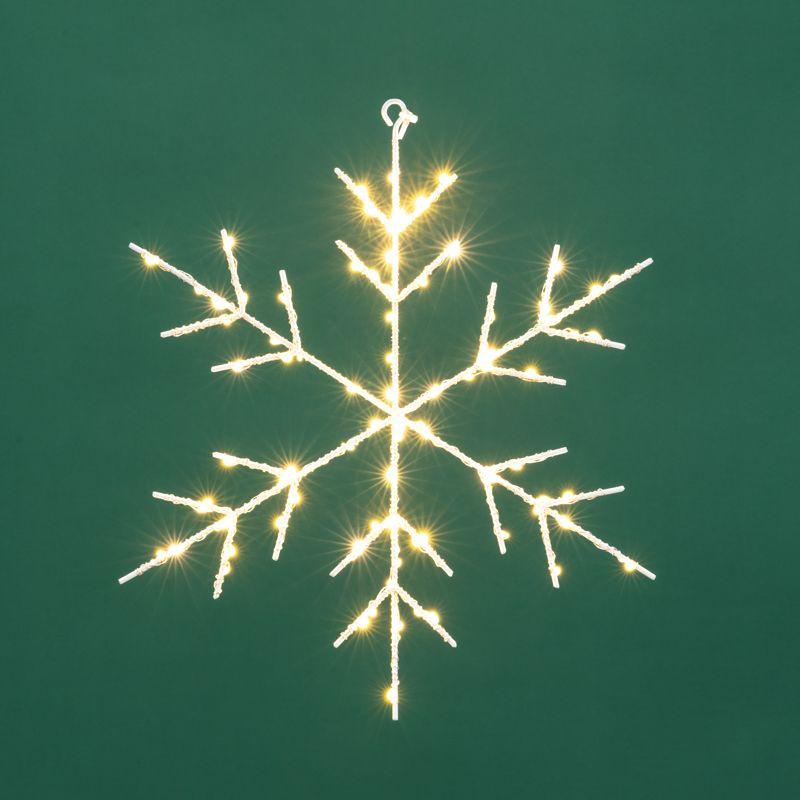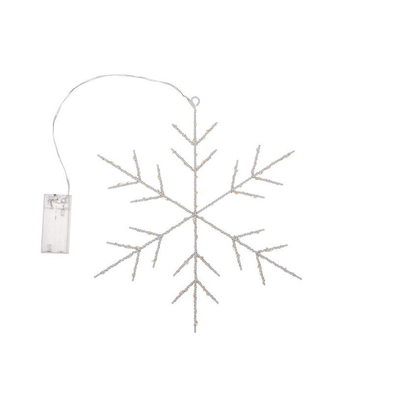 Светодиодная подвесная фигура «Снежинка» станет незаменимым украшением во время зимних праздников и гармонично дополнит интерьер детской, гостиной или кухни, а также может стать прекрасным новогодним подарком родным и близким. Фигура наполнит помещение ярким теплым белым свечением и подарит праздничное настроение взрослым и детям. Снежинка может быть подвешена в любом подходящем месте при помощи кольца, которое находится на металлическом каркасе. Фигура полностью автономна и безопасна в использовании, так как ее питание обеспечивают 2 батарейки типа АА (не входят в комплект). Батарейный блок расположен на конце 30-сантиметрового кабеля и не портит внешний вид фигуры.