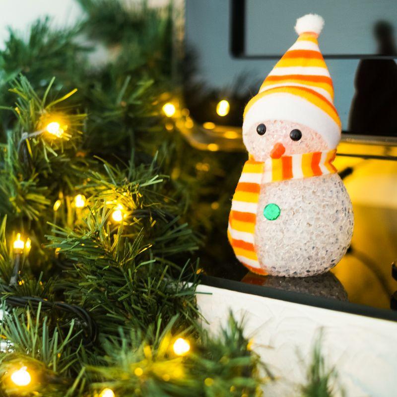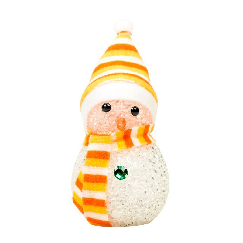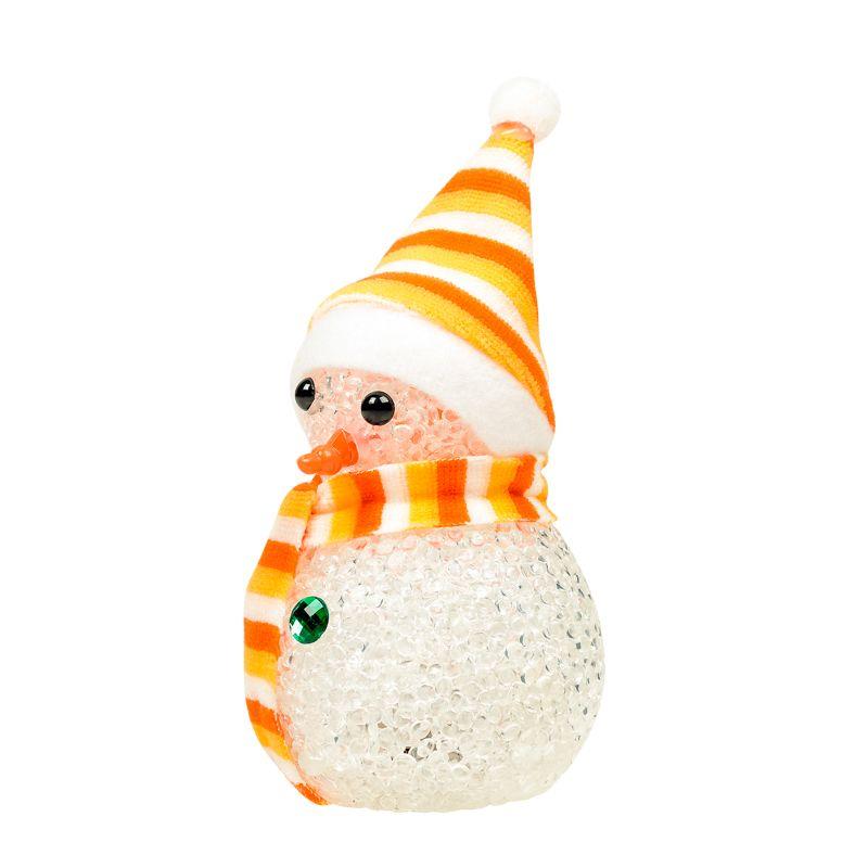 Светодиодная фигура «Снеговик» высотой 17 см выполнена в виде милого новогоднего персонажа, одетого в текстильные шарф и шапочку. Фактурные снежные комья, из которых собран снеговик, изготовлены из пластика EVA — современного, безопасного, прочного материала. RGB светодиод эффектно подсвечивает композицию, меняя оттенки в хаотичном режиме. Светодиоды экономно тратят заряд трех батареек типа AG13, находящихся в специальном аккумуляторном блоке. Элементы питания идут в комплекте.