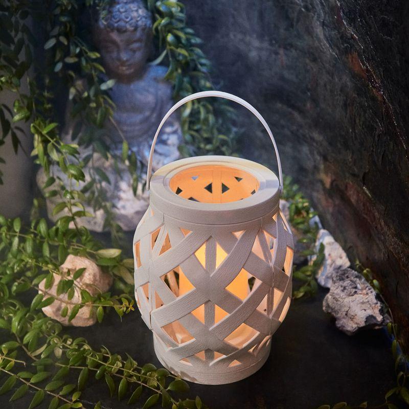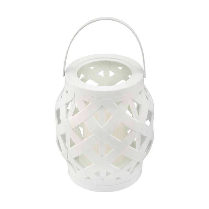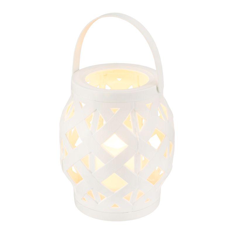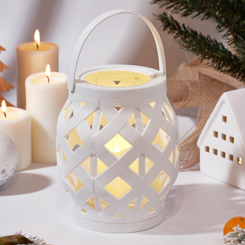 Декоративный фонарь со свечкой в плетеном корпусе белого цвета — стильное, оригинальное и безопасное светодиодное украшение для интерьера. В центре находится фигурка, выполненная в виде восковой свечи. Диод, излучающий белый свет теплого оттенка, имитирует настоящее пламя, не нагревается и экономно расходует энергию. Фонарь получает питание от 3 батареек тип ААА и не нуждается в розетке. На корпусе предусмотрен выключатель ON/OFF. Изделия на батарейках абсолютно безопасны в использовании.