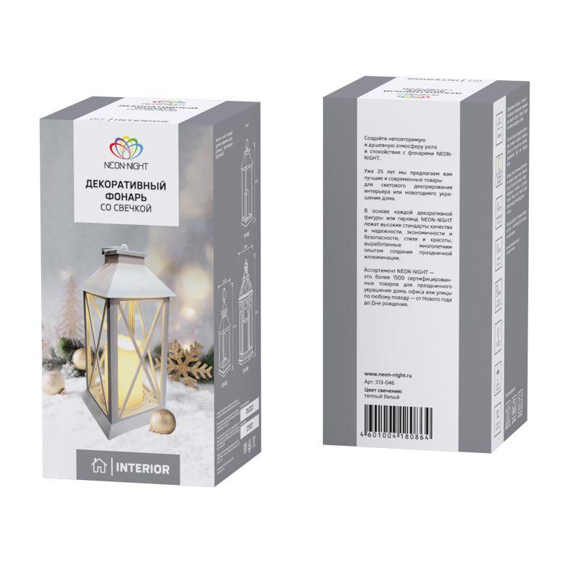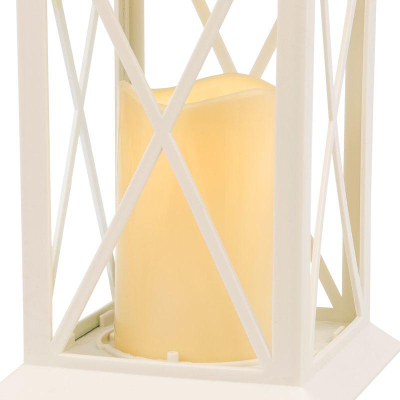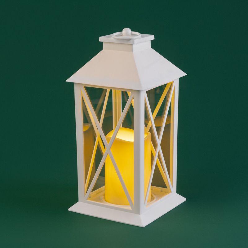 Декоративный фонарь со свечкой в резном корпусе — оригинальное новогоднее украшение интерьера, которое подарит ощущение зимней сказки и рождественских чудес. В корпусе белого цвета в стиле «прованс» за стеклом находится главный декоративный элемент — пластиковая свеча, которая излучает теплый белый свет. 1 диод получает питание от 3 батареек типа ААА и экономно расходует заряд. Для управления подсветкой на корпусе предусмотрена кнопка ON/OFF. Кольцо в верхней части позволяет подвешивать фонарь в любом удобном месте.