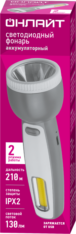 Фонарь светодиодный ручной 90 894 OPT-CP08-ACCU Li-Ion 800мА.ч 3.7В 2 режима (луч кемпинг) ОНЛАЙТ 90894