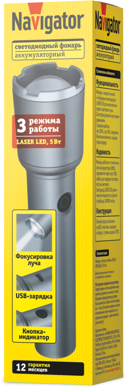 Литий-ионный емкий аккумулятор 1,5 А·ч обеспечивает до 4,5 часа автономной работы в режиме луч 50%