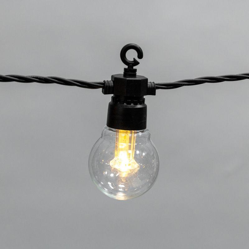 Уличная гирлянда Лофт представляет собой готовый к использованию комплект с уже установленными в патроны светодиодными лампами. Мягкое свечение достигается благодаря рассеивателю уникальной формы. Гирлянда выполнена из электрического провода длиной 10 метров, заключенного в изоляционную оболочку из морозостойкого, гибкого, прочного каучука черного цвета. Каждая лампа имеет удобный крючок для крепления на трос. Гирлянда защищена от влаги и пыли по стандарту IP65 и подходит для размещения на улице. На концах расположены влагозащищенные коннекторы, с помощью которых можно соединить гирлянду до 10 комплектов.
