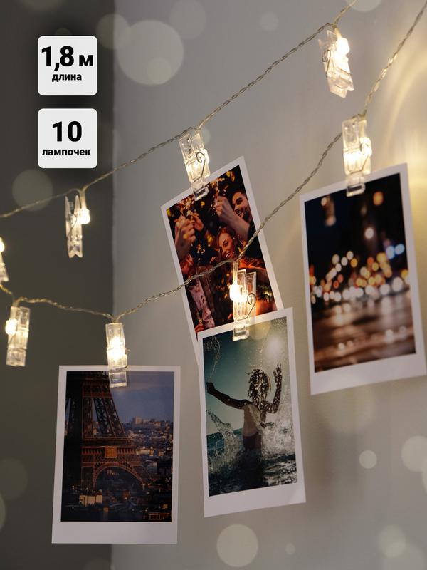 Гирлянда "Прищепки" ILD-10WW-BO-PN 10LED тепл. бел. 1.8м IP20 (2хАА не в компл.) SHLights 4690601047168