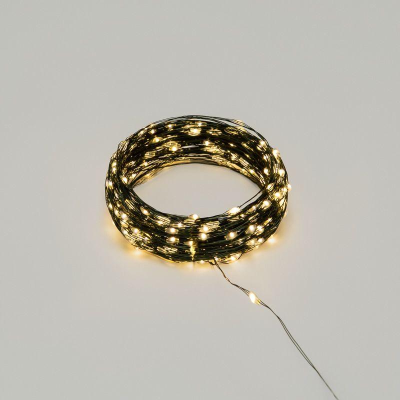 Гирлянда Роса длиной 30 метров представляет собой тонкий провод зеленого цвета, на котором горят и мерцают маленькие светодиоды, напоминающие капли росы.