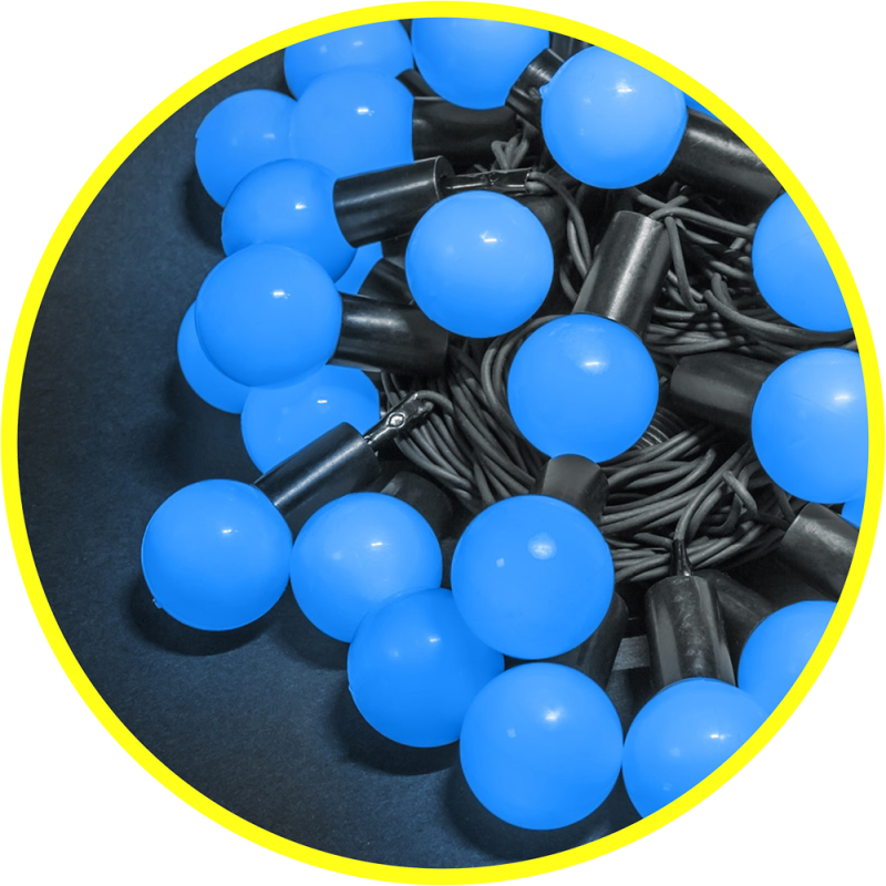 Гирлянда «шарики» 8 метров Длина: 8 м Количество светодиодов: 70 шт. Диаметр шарика: 2,4 см Расстояние между шариками: 10 см Соединение в линию: до 3 гирлянд Тип провода: чёрный каучук
