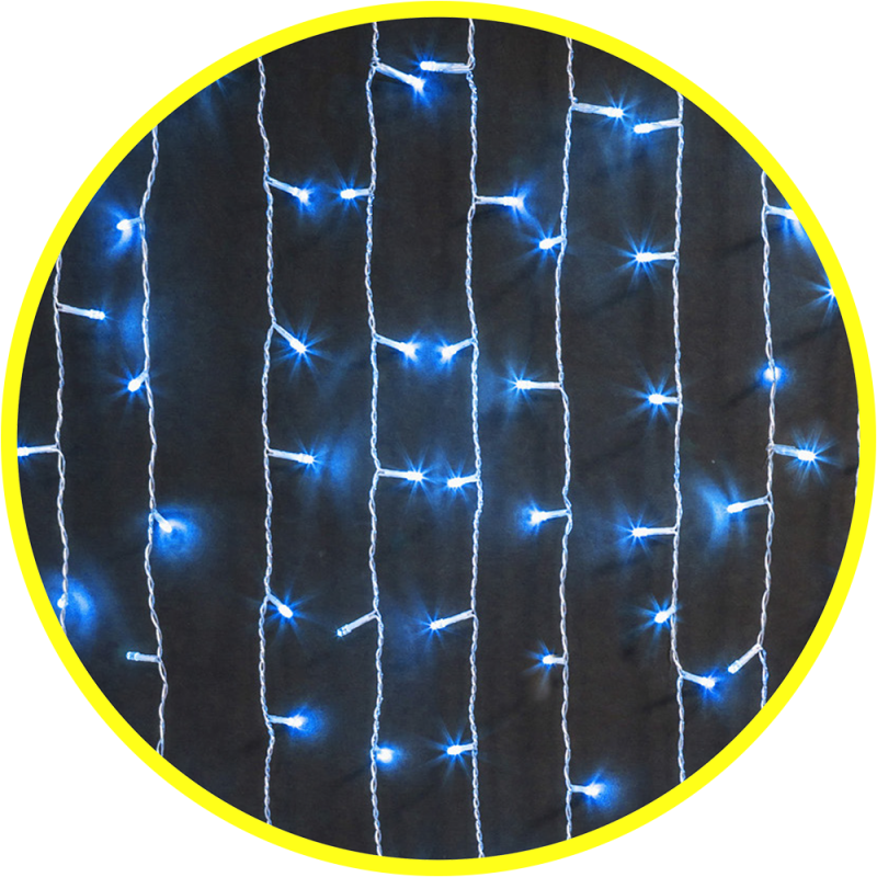 Гирлянда «занавес» 2 х 1,5 метра Размер: 2 х 1,5 м Количество светодиодов: 357 шт. Расстояние между светодиодами: 8 см Соединение в линию: до 5 гирлянд Тип провода: морозостойкий, прозрачный ПВХ Модель C02 имеют эффект свечения «искрящийся снег»