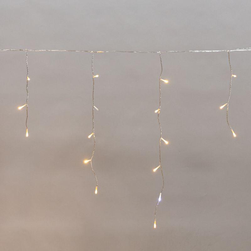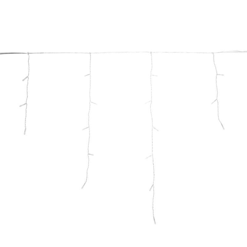 На каждой нити располагаются светодиоды, создающие эффект сверкающих сосулек. Цвет свечения – теплый белый.