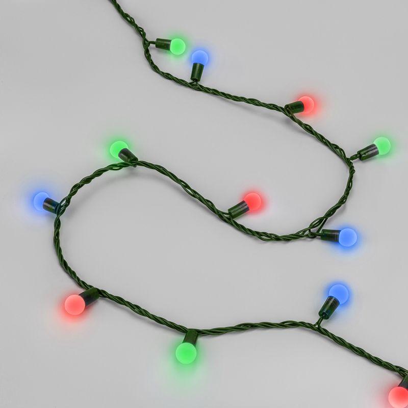 Представляет собой горизонтальный провод, на котором располагаются светодиоды с насадками в виде шариков диаметром 1,5 см. Свечение создается с помощью комбинации двух основных цветов: красного и зеленого или красного и синего. Эти выразительные и насыщенные цвета мигают, придавая окружающему пространству динамичность и яркость.