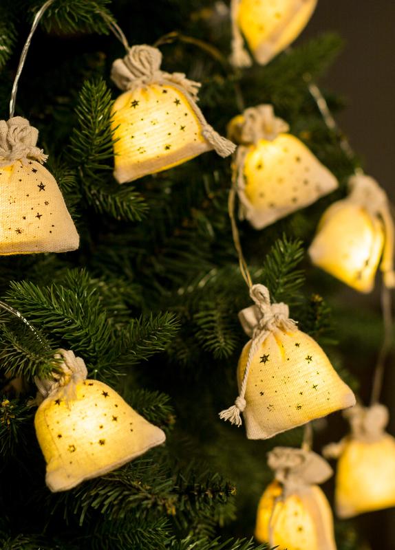 Интерьерная гирлянда "ПОДАРКИ" KOC_GIR-B118. 10 тканевых мешочков - модное и современное решение для создания акцентов в интерьере. Гирлянда послужит дополнительным атмосферным источником теплого мягкого света. Используйте ее, где захотите, даже если поблизости нет розетки или удлинителя. Размер мешочков 4х6х7см, принт на ткани - россыпь звездочек. Работает от батареек 2*АА