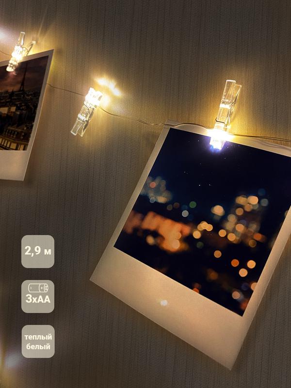 Гирлянда светодиодная "Прищепки" ILD-30WW-BO-PN 2.9м элементы питания 2хAA SHLights 4690601047151