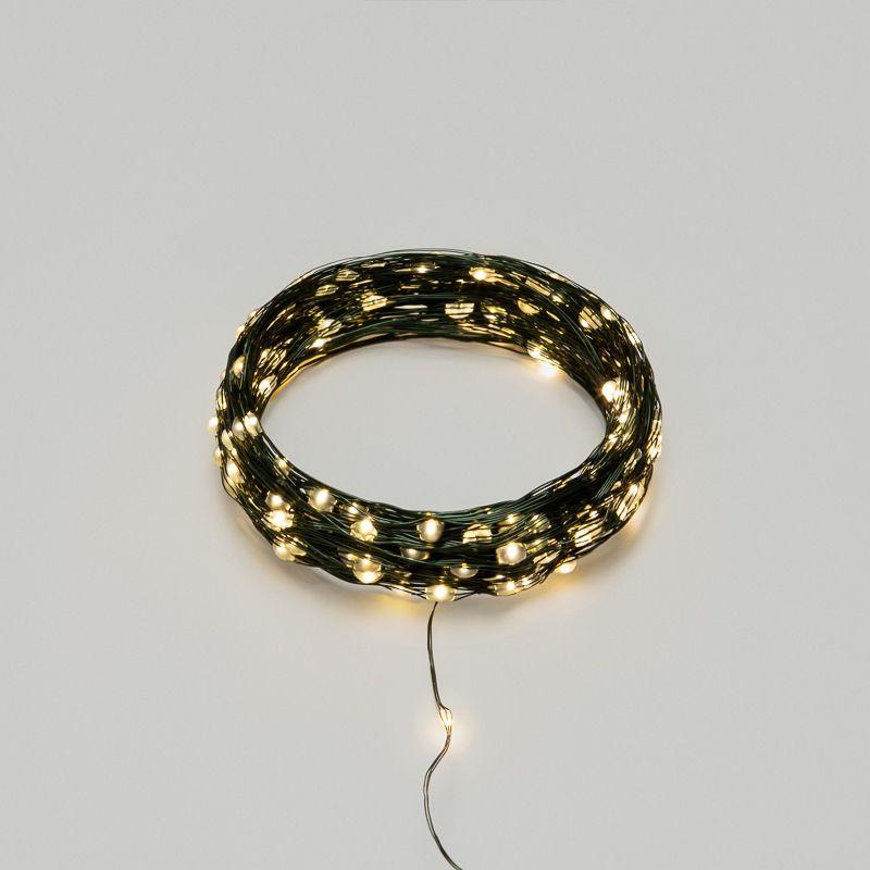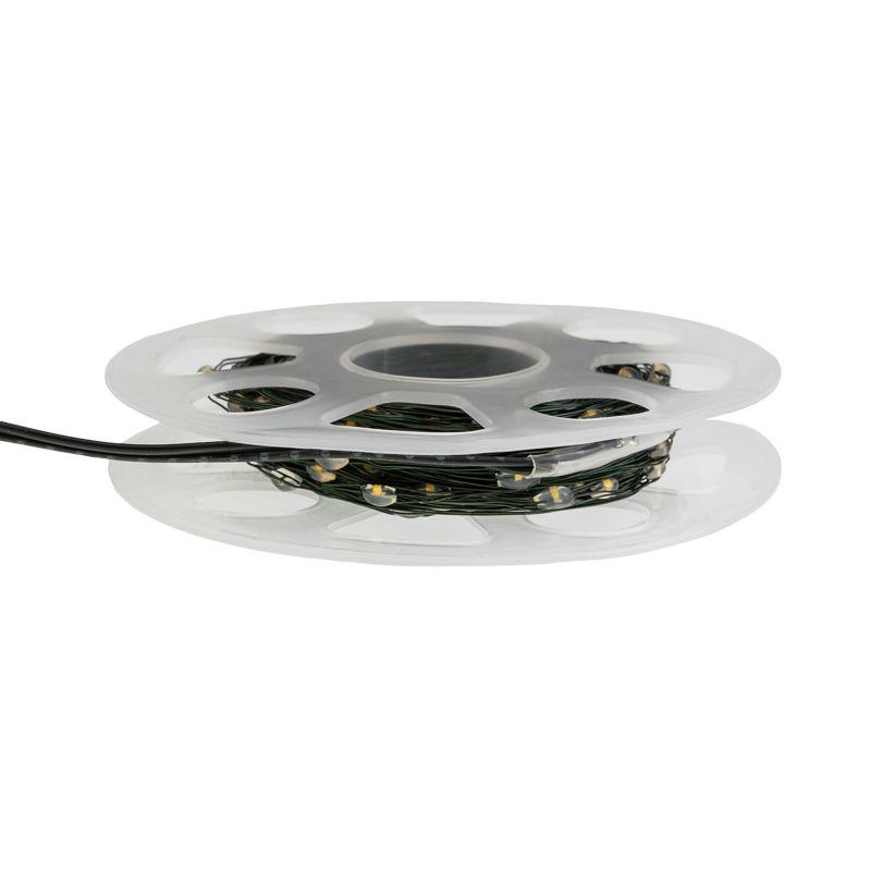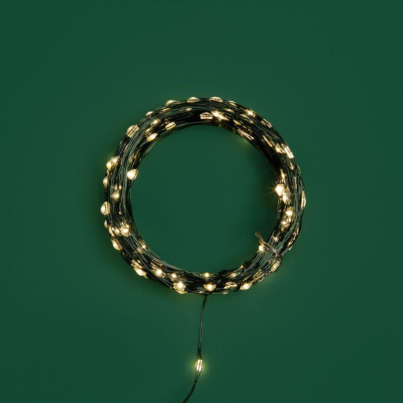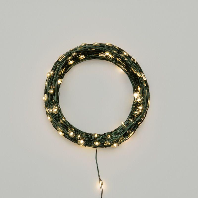 Гирлянда Роса длиной 20 метров представляет собой тонкий провод зеленого цвета, на котором горят и мерцают маленькие светодиоды, напоминающие капли росы.