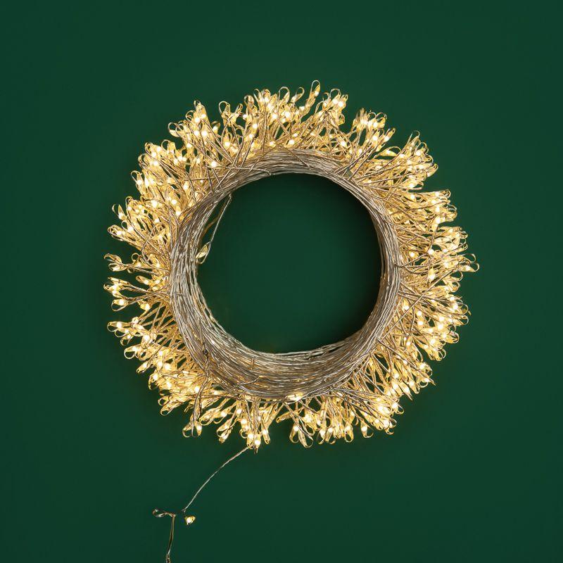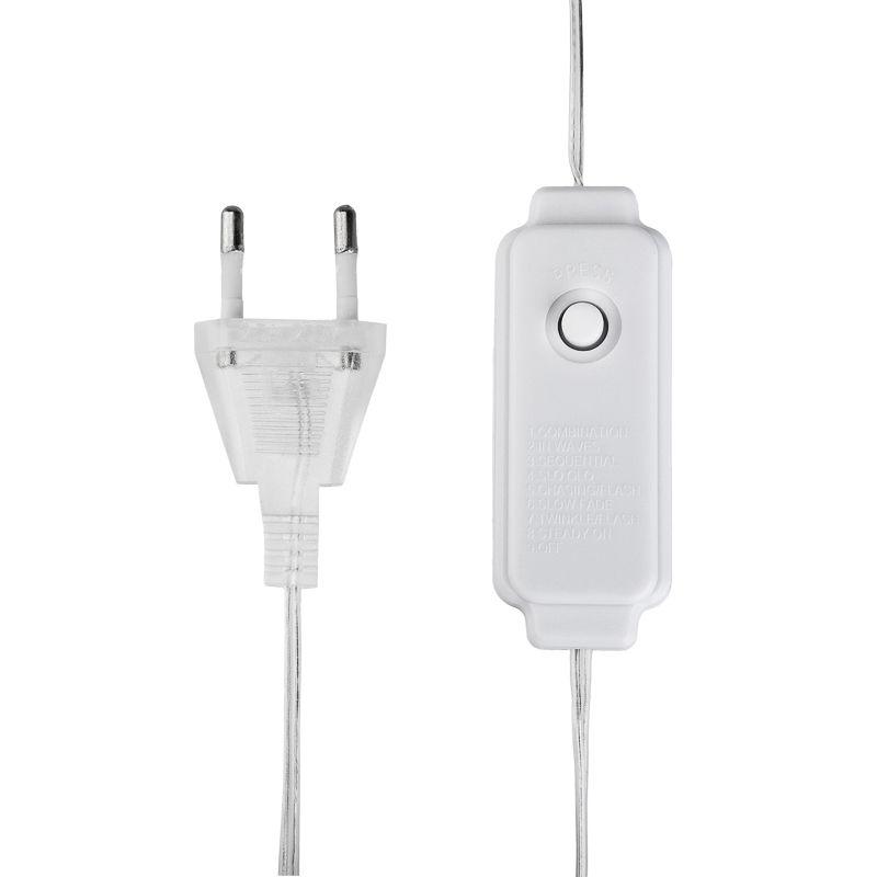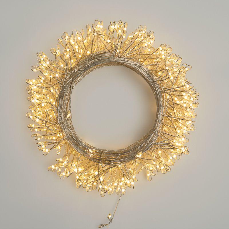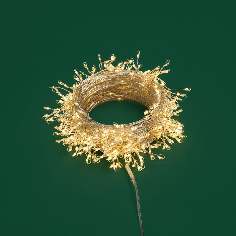 Гирлянда состоит из тонкого провода длиной 20 метров, на котором расположены 500 долговечных светодиодов с теплым белым свечением.