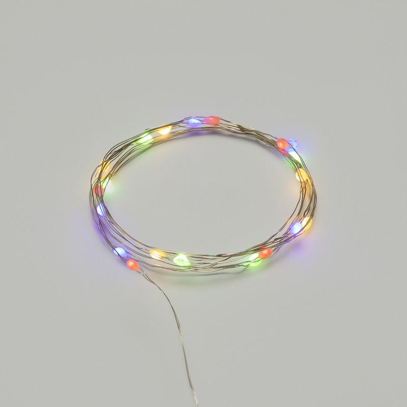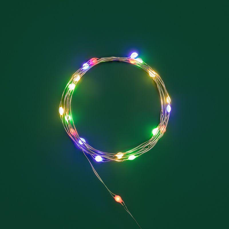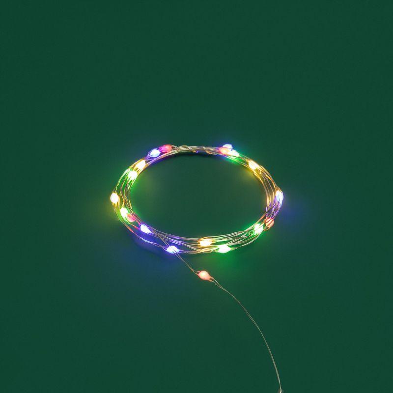 Гирлянда состоит из тонкого провода длиной 2 метра, с расположенными на нем 20 разноцветными долговечными светодиодами.
