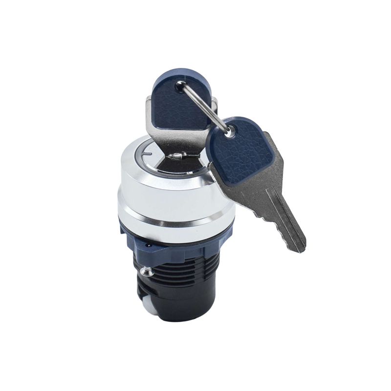 Головка переключателя с ключом на 3 положения с фиксацией выполнена в алюминиевом корпусе с стандартной ручкой, что гарантирует долговечность и удобство эксплуатации. Возможность фиксации каждой из трех позиций улучшает точность управления и снижает риск ошибок, обеспечивая надежность в процессе эксплуатации.