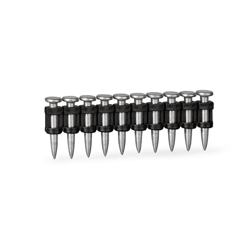 • Гвозди кованые GGN предназначены для крепления строительных конструкций к бетону, металлопрокатным изделиям, кирпичной кладке и другим материалам • Кованое острие гвоздя в форме пули обеспечивает легкое вхождение в поверхности высокой твердости: • двутавровые стальные балки, металлические швеллеры, используемые в конструкциях зданий, инженерных конструкциях • бетон высокой прочности, используемый при возведении монолитных плит, колонн, перекрытий и фундаментов зданий • Диаметр тела гвоздя: 3.05 мм • Длина гвоздя: • GGN-3017MG: 17 мм • GGN-3019MG: 19 мм • GGN-3022MG: 22 мм • GGN-3025MG: 25 мм • Материал гвоздей: сталь • Покрытие: цинковое • Совместимы с газовыми монтажными пистолетами GCN-40 (КВТ), GCN-40Y (КВТ), а так же с газовыми и аккумуляторными пистолетами других брендов • Количество гвоздей в обойме: 10 штук • Количество гвоздей в упаковке: 1000 штук