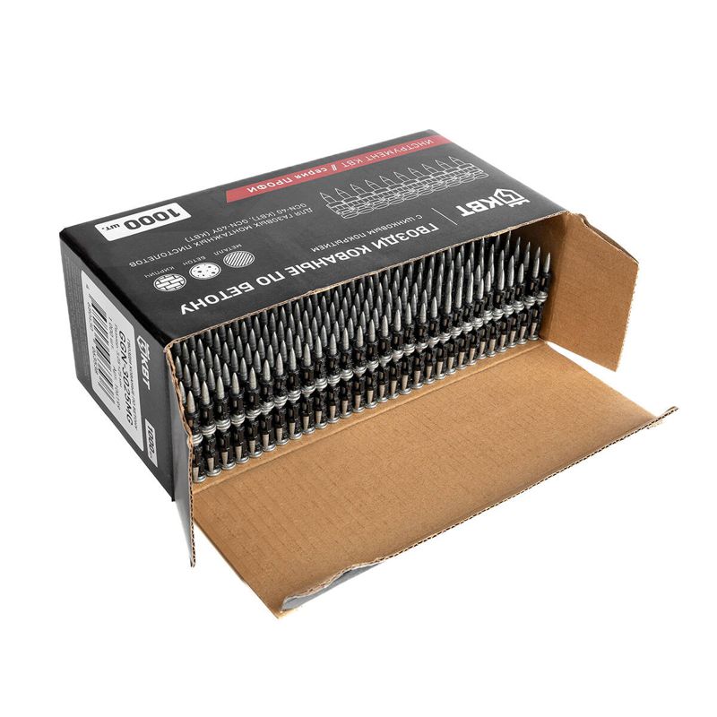 • Гвозди кованые GGN предназначены для крепления строительных конструкций к бетону, металлопрокатным изделиям, кирпичной кладке и другим материалам • Кованое острие гвоздя в форме пули обеспечивает легкое вхождение в поверхности высокой твердости: • двутавровые стальные балки, металлические швеллеры, используемые в конструкциях зданий, инженерных конструкциях • бетон высокой прочности, используемый при возведении монолитных плит, колонн, перекрытий и фундаментов зданий • Диаметр тела гвоздя: 3.05 мм • Длина гвоздя: • GGN-3017MG: 17 мм • GGN-3019MG: 19 мм • GGN-3022MG: 22 мм • GGN-3025MG: 25 мм • Материал гвоздей: сталь • Покрытие: цинковое • Совместимы с газовыми монтажными пистолетами GCN-40 (КВТ), GCN-40Y (КВТ), а так же с газовыми и аккумуляторными пистолетами других брендов • Количество гвоздей в обойме: 10 штук • Количество гвоздей в упаковке: 1000 штук