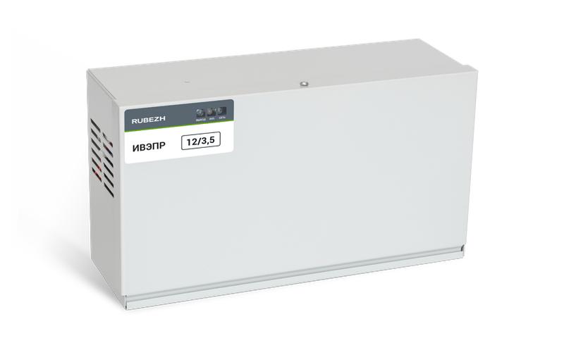 Источник питания ИВЭПР 12/3,5 имеет несколько исполнений корпусов для установки одной или двух АКБ ёмкостью от 7 Ач до 17 Ач. Предусмотрена техническая возможность подключения боксов резервного электропитания БР 12 для увеличения времени непрерывной работы от АКБ.