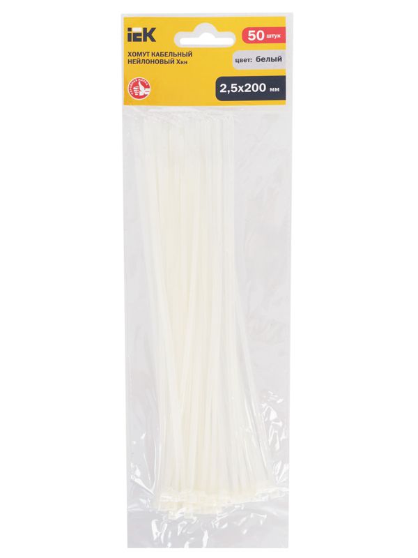 Хомут кабельный 2.5х200 нейл. бел. (уп.50шт) IEK UHH20-D025-200-050